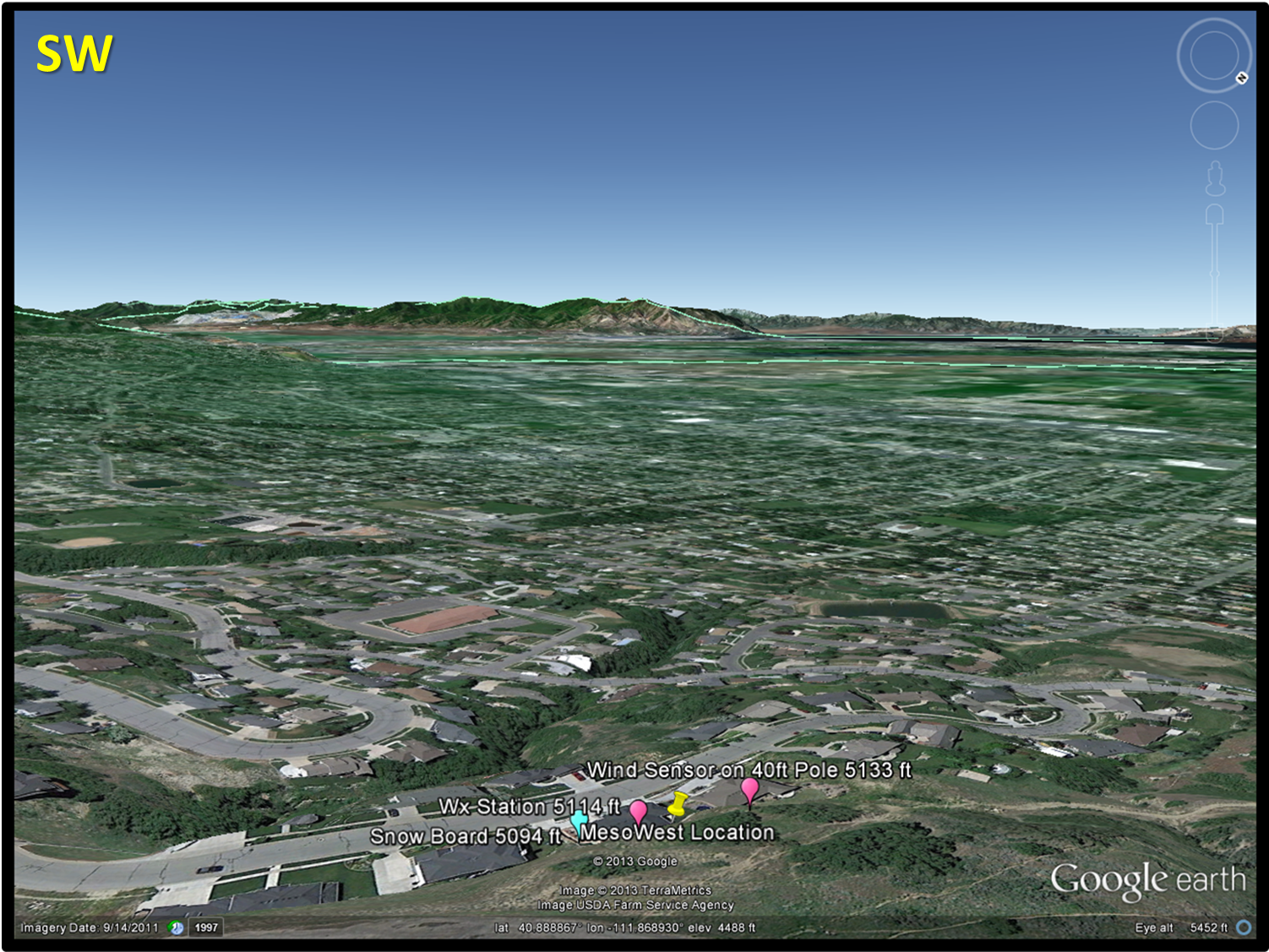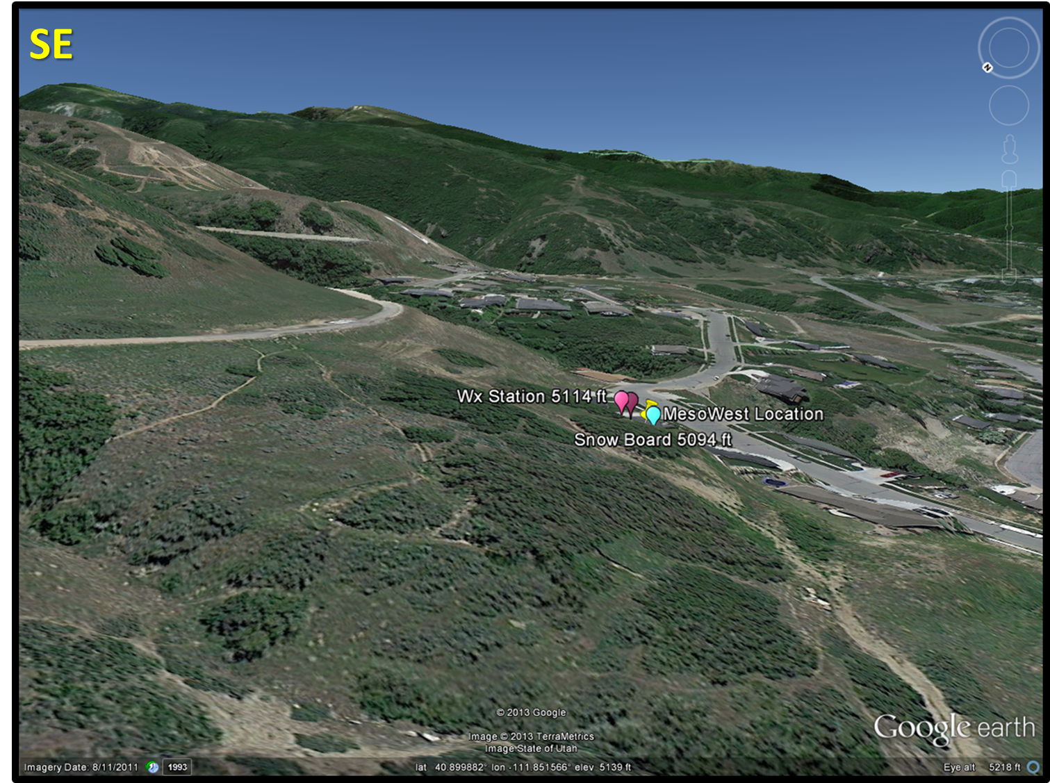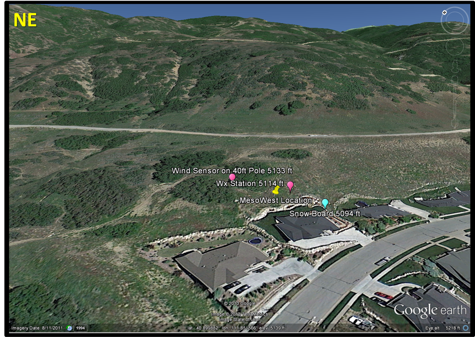 ![]() Looking NE, the obvious item of interest is the mountain side. While light nocturnal downslope winds may occur from this direction, NE is not expected to be a wind direction of interest.